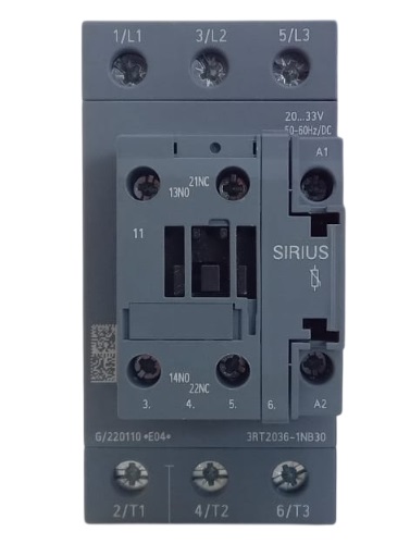 Contactor Sirius 3RT2036-1NB30. Con auxiliares (1NC-1NO).